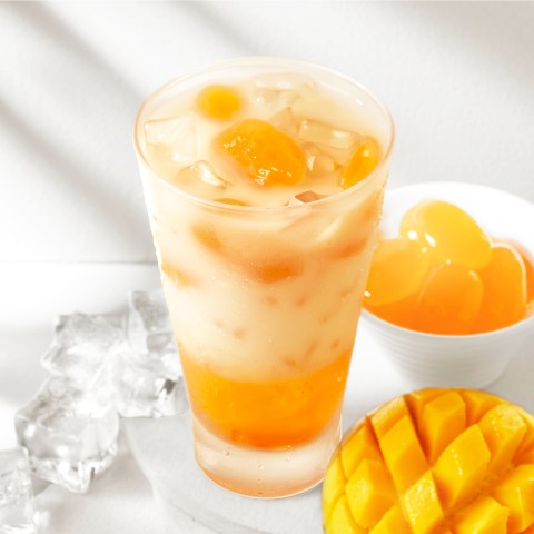 A refreshing drink that combines sweet mango syrup with the tangy freshness of Yakult, perfectly complemented by mango-flavored palm fruit.